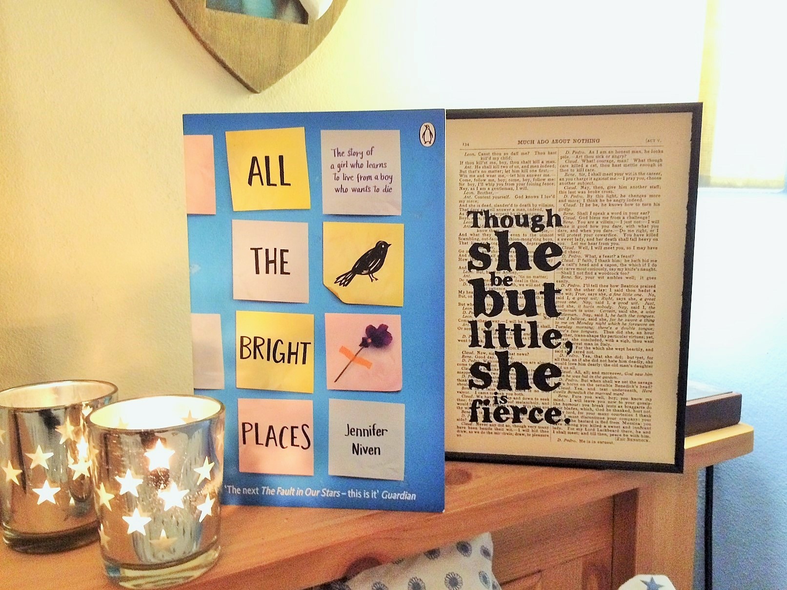 Next up, All the Bright Places by Jennifer Niven. Another YA of course, but this one is more realistic and takes place in a school. It follows the love of Violet and Finch, who meet on top of the school’s bell tower as they both consider taking their own lives. As the front cover says, it’s ‘the story of a girl who learns to live from a boy who wants to die’.